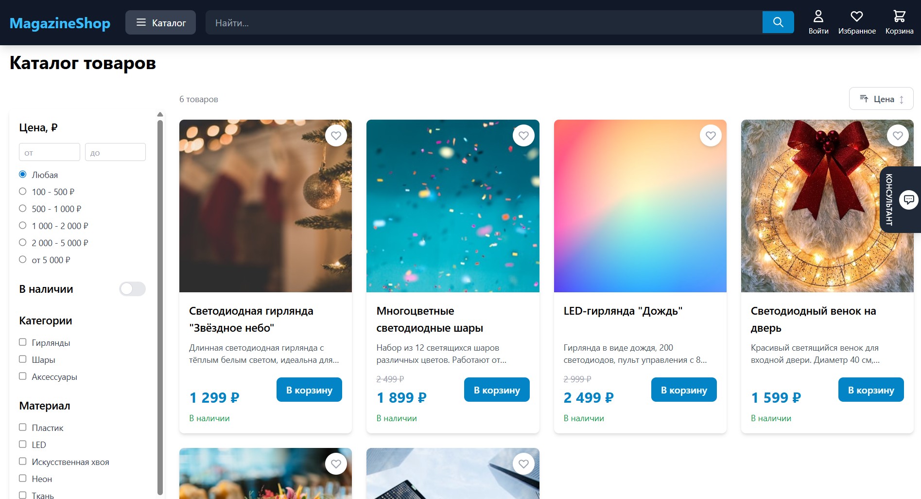 Интернет-магазин праздничных товаров: светодиодные аксессуары, гирлянды, шары и декоративные элементы для оформления праздников. Удобный каталог, корзина и оформление заказа с доставкой.